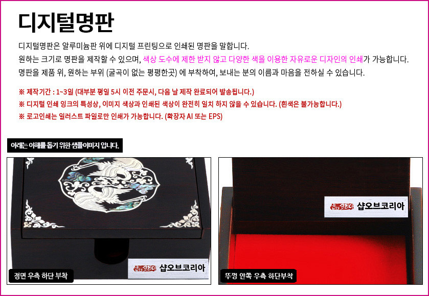 전통 공예품에 고객님만의 특별한 메시지를 인쇄해드리는 서비스입니다.