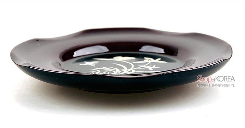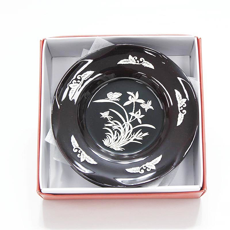 난초의 무늬가 정교하게 장식된 고급 자개 컵받침입니다.