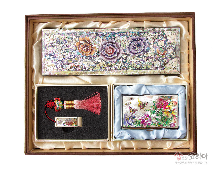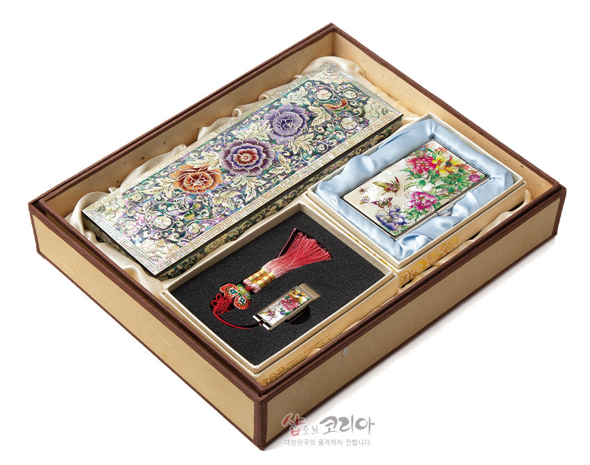 자개필함세트-나전으로 핀 모란(필함,명함케이스,usb32G)
