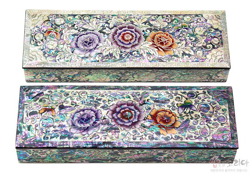 영롱한 빛깔의 자개무늬가 돋보이는 전통공예품으로