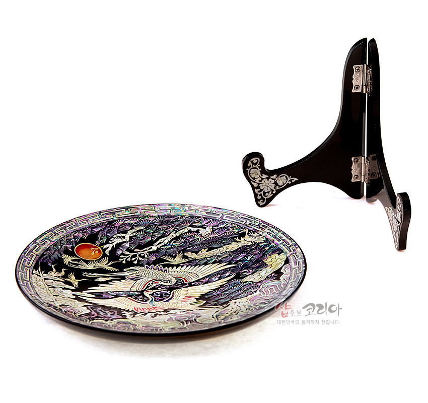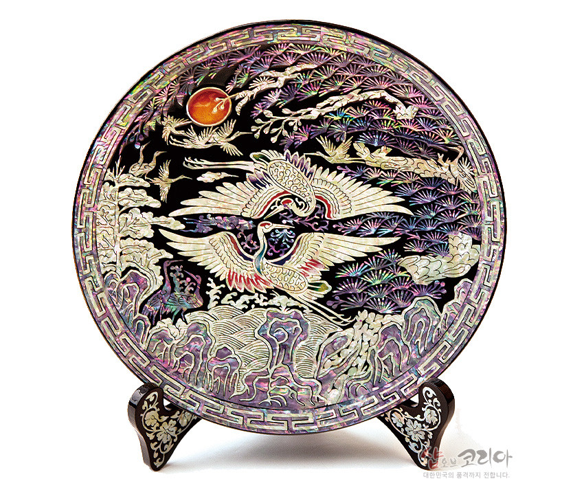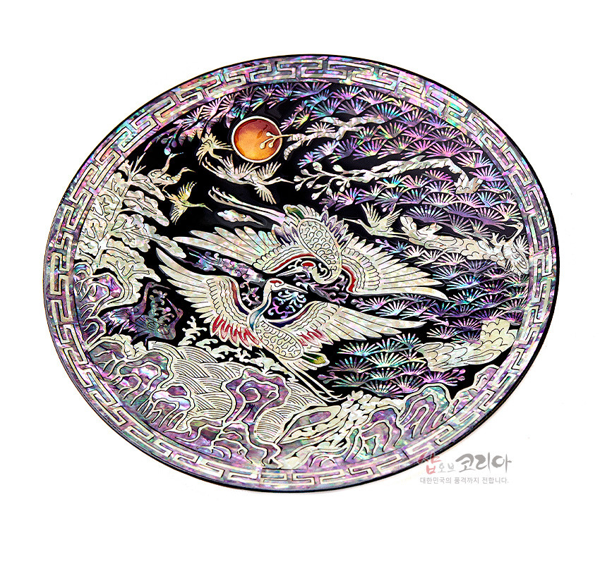 천년의 세월을 이어온 한국 전통 나전칠기 공예 기법으로 제작된 고급 장식 쟁반입니다.
