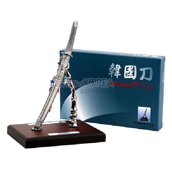나무 받침(1), 스탠드(1), 칼과 칼집(1)으로 구성되어 있습니다.