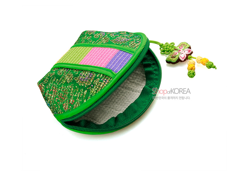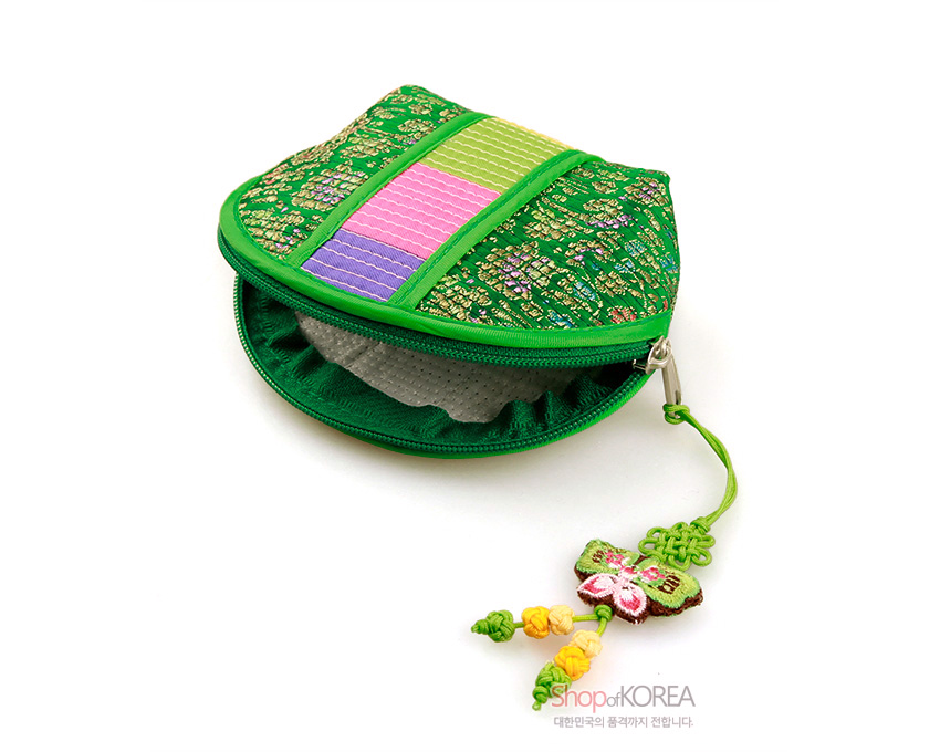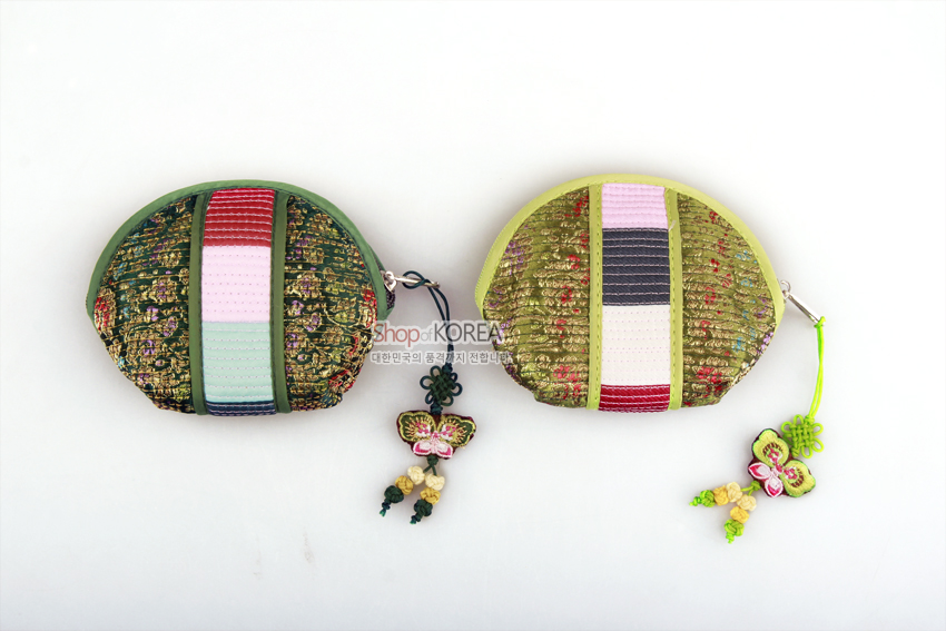 아름다운 천 위에 꼼꼼한 누빔 작업을 하여 고급스러운 동전지갑입니다.