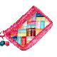 화려한 색상의 모시 천 위에 한국의 전통문양인 조각보를 디자인한 파우치입니다.
