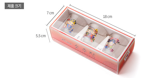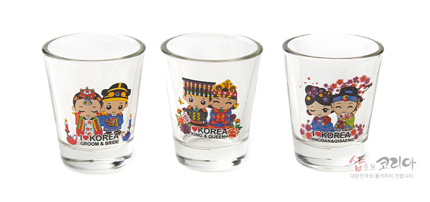 한국의 전통 의상을 예쁘게 표현한 캐릭터 커플 소주잔 세트입니다.
