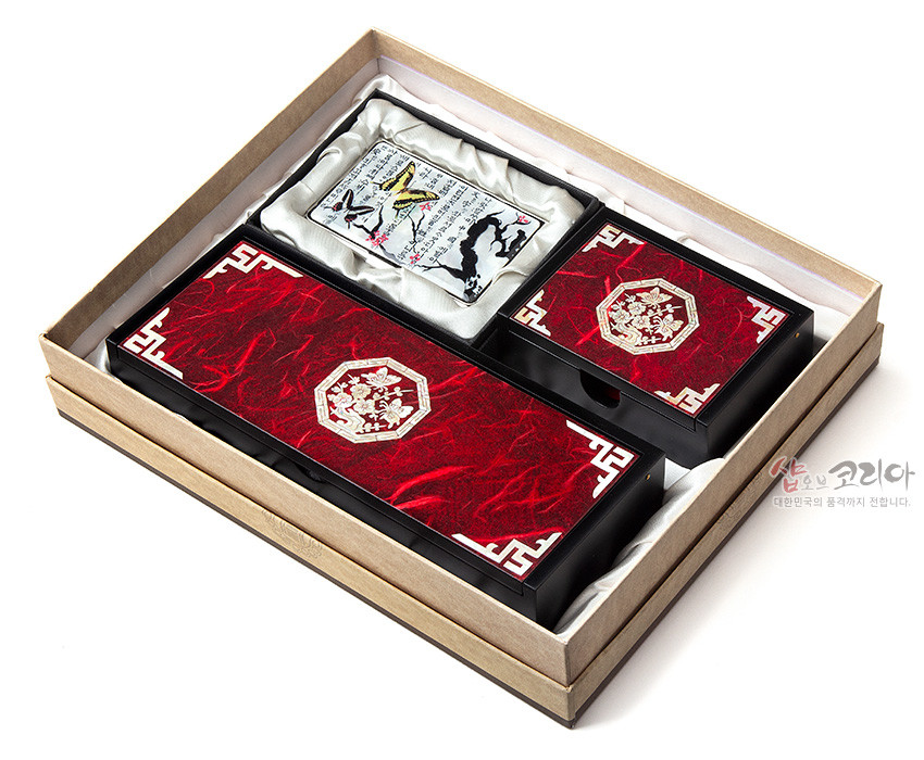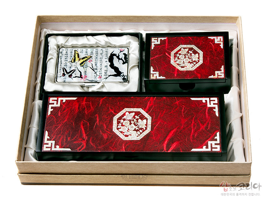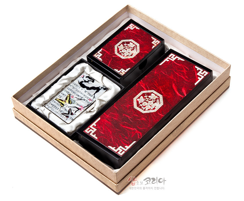정교하게 장식된 고급스러운 한지 자동필함,명함함,명함케이스 3종세트입니다.