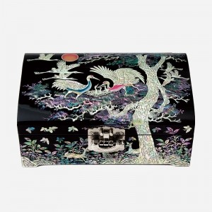 소나무의 웅장함과 학의 아름다움이 고전적 우아함으로 표현된 전통 나전칠기 제품